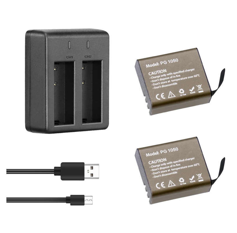 Includes: 2× Official Camera Batteries, 1× Dual-Channel Charger