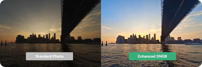 Capture crisp detail and rich tones - even in low light. DNG8 RAW Photo Mode enhances image quality in dark environments, giving you greater dynamic range and editing flexibility.